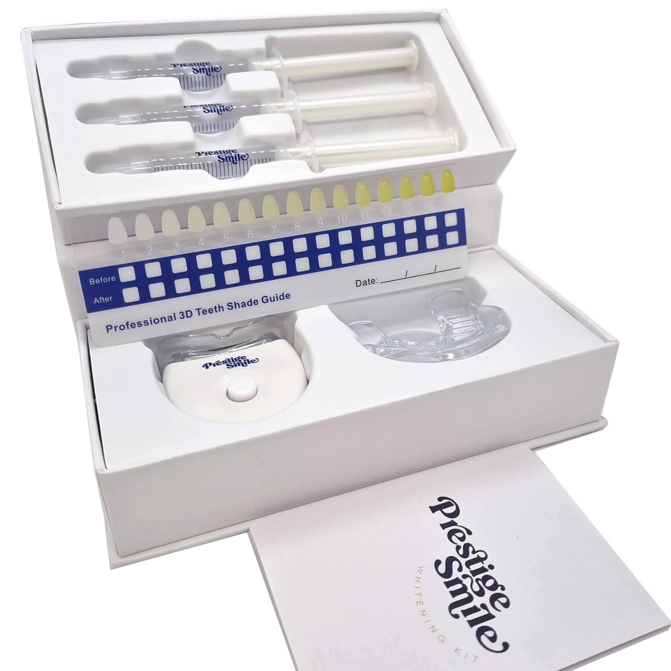 Our at-home whitening kits come with everything you need to safely achieve whiter teeth at home. They include: